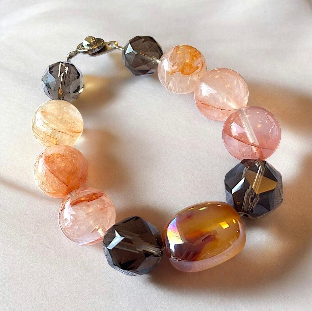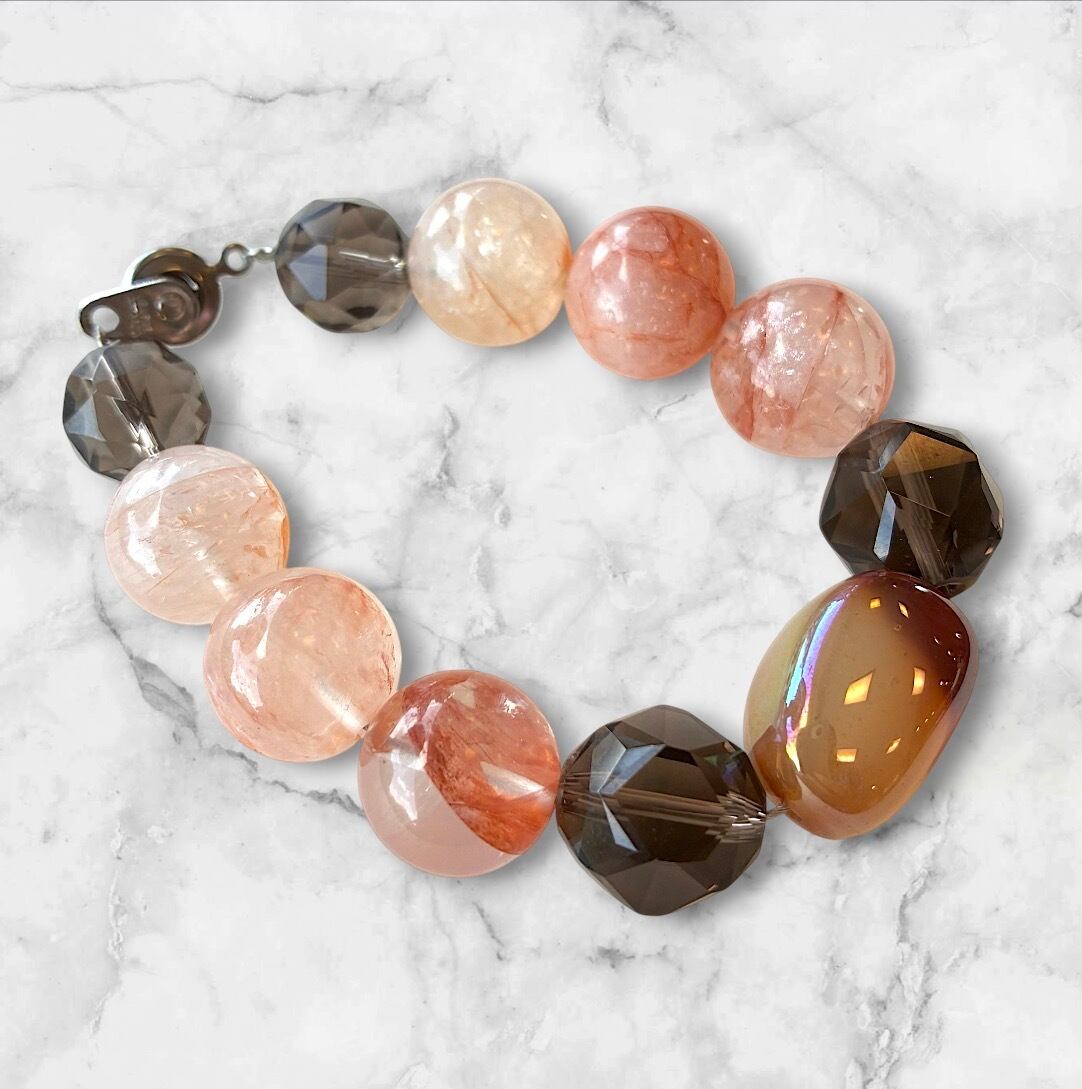 『オーロラカーネリアン・スモーキークォーツ・ヒマラヤ水晶入りブレスレット』です♪