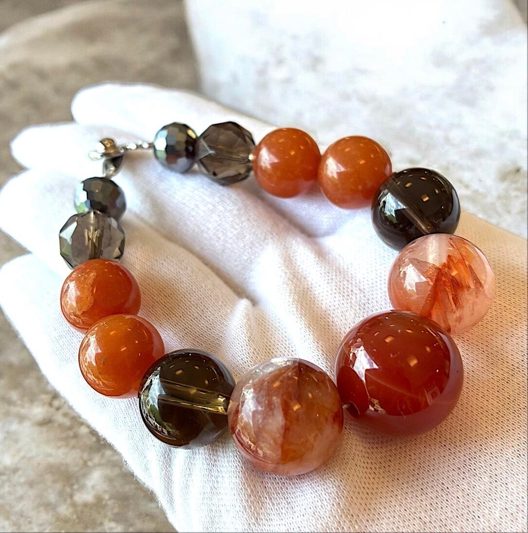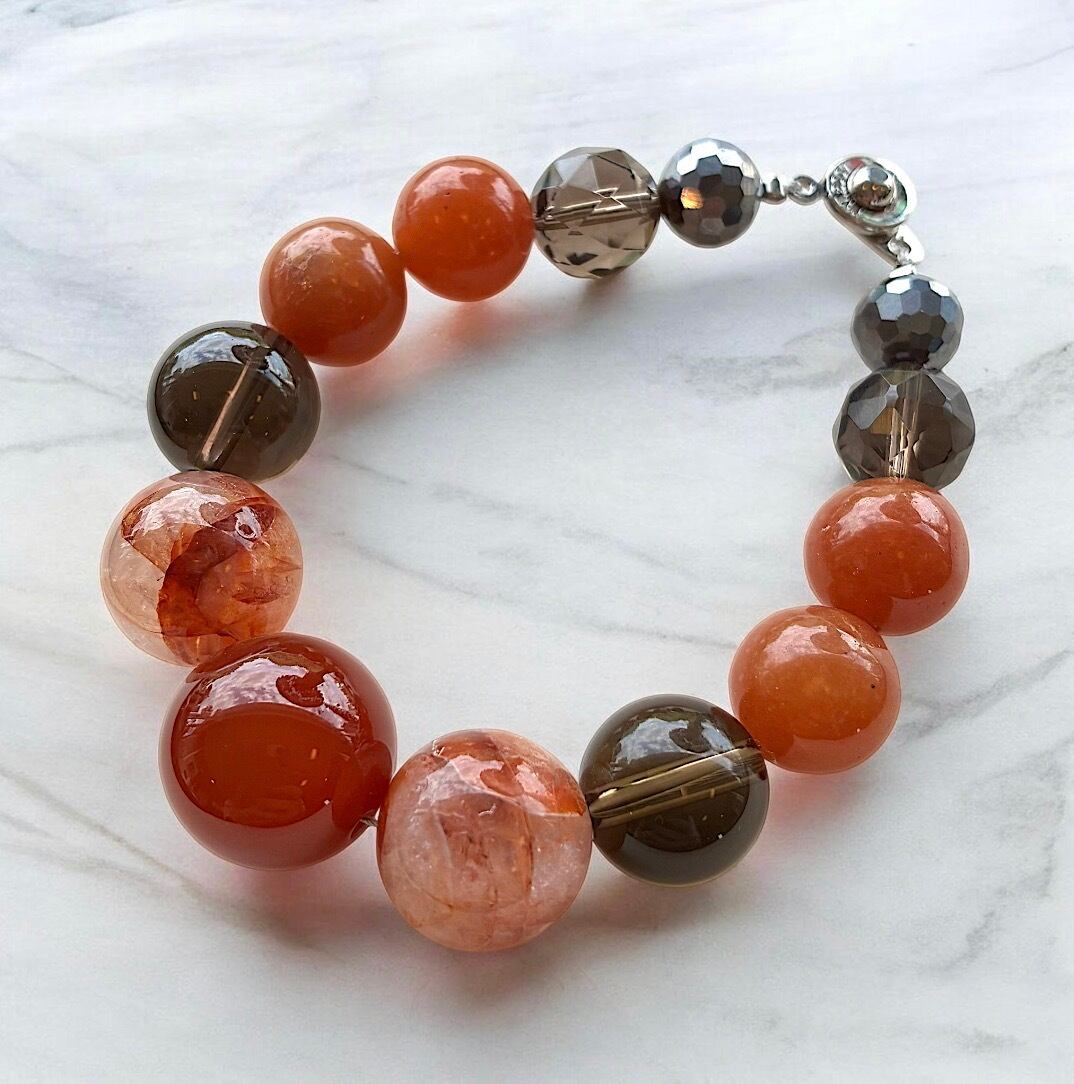☆カーネリアン・ヒマラヤ水晶・スモーキークォーツ・オレンジアベンチュリン・テラヘルツ入りブレスレット☆
