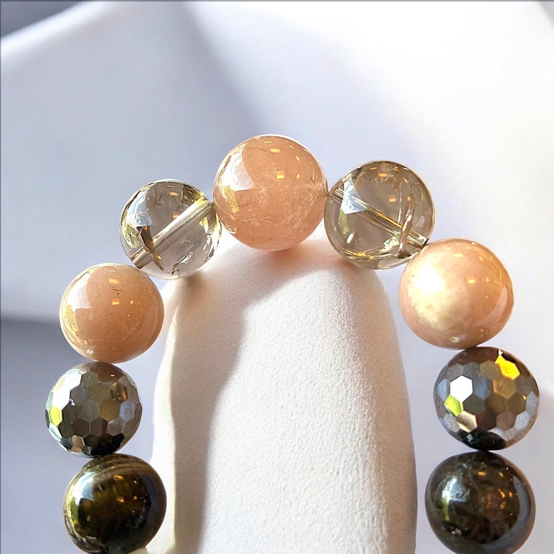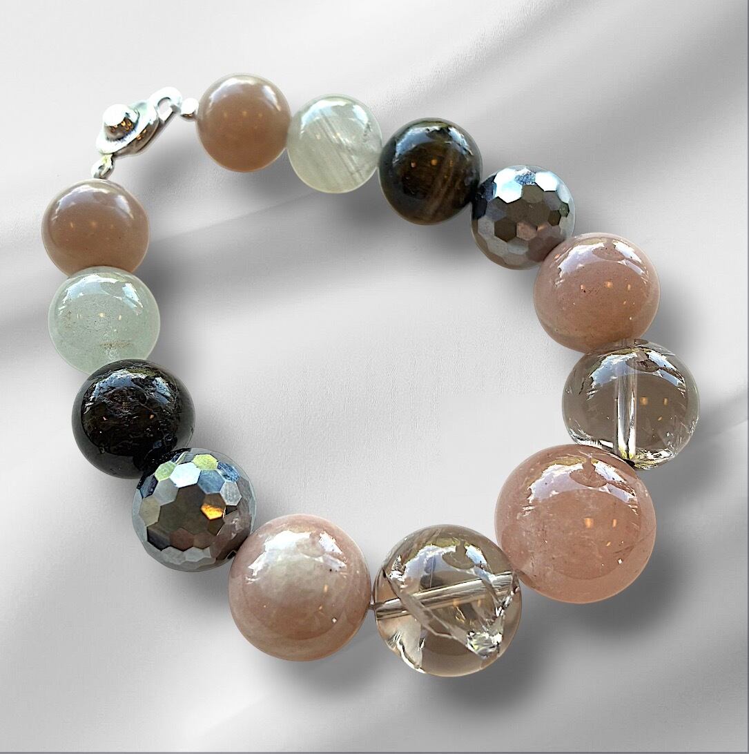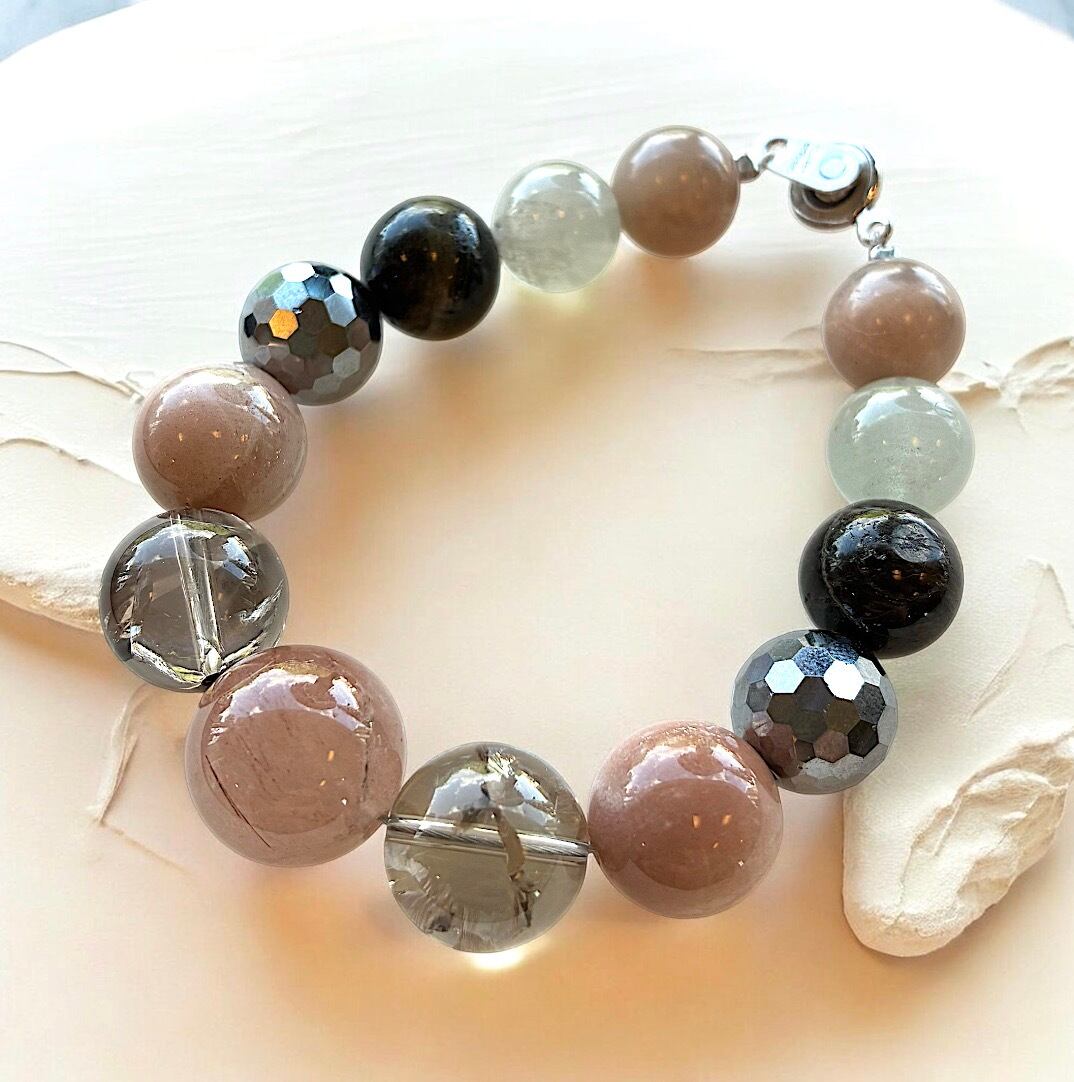 ☆ピンクルチル・スモーキー・オレンジムーンストーン・テラヘルツ・トルマリン・ファントムクォーツ入りブレスレット☆ブレスレット☆