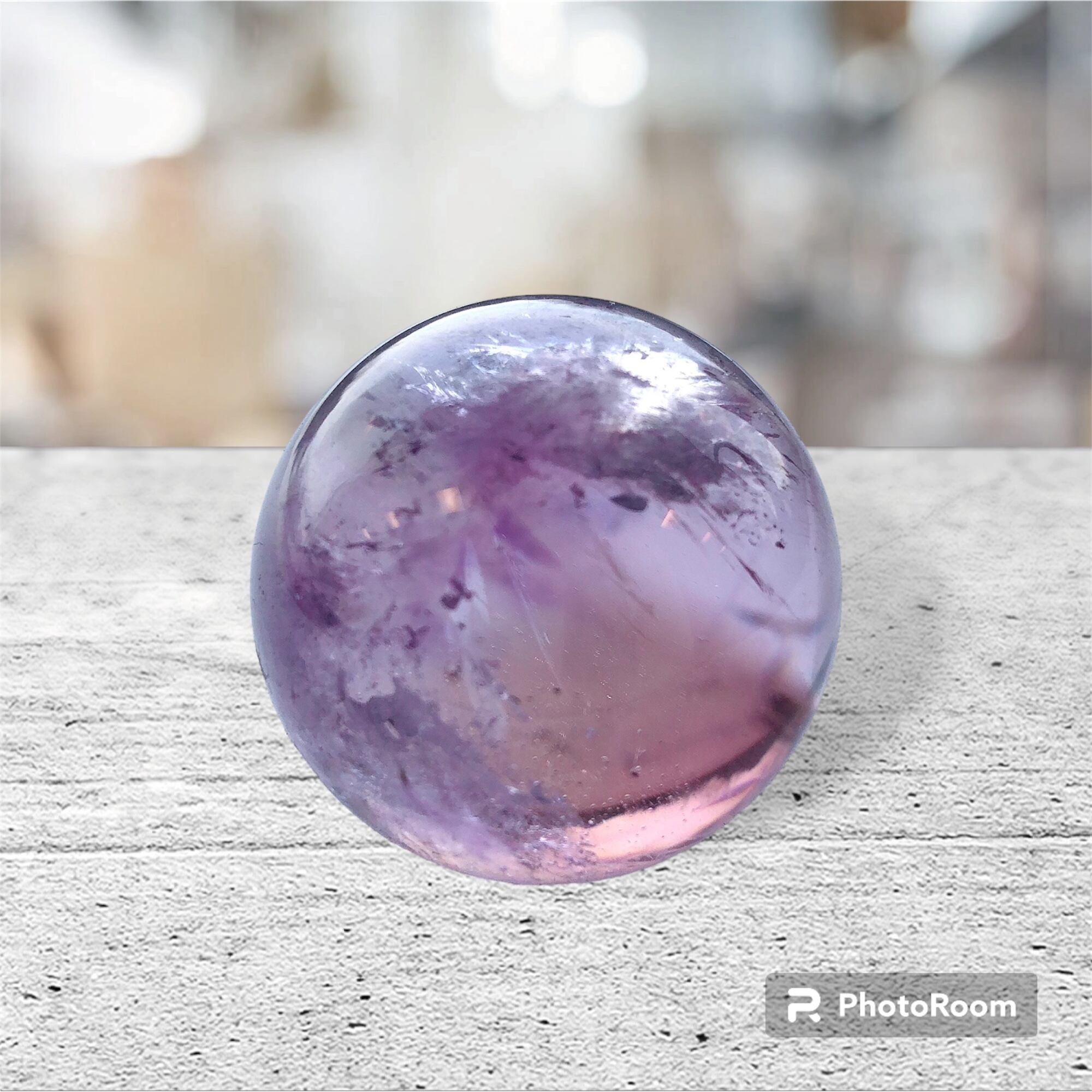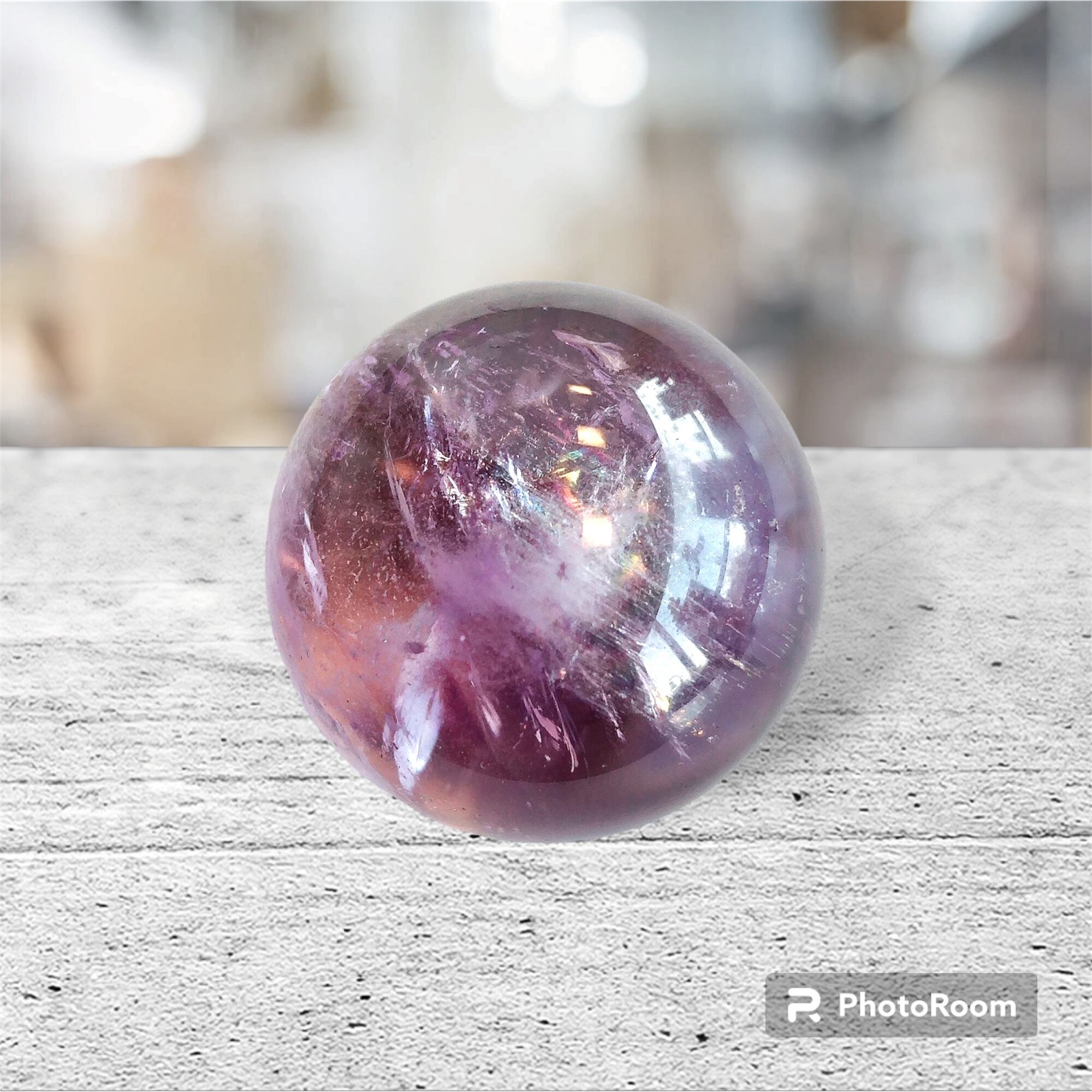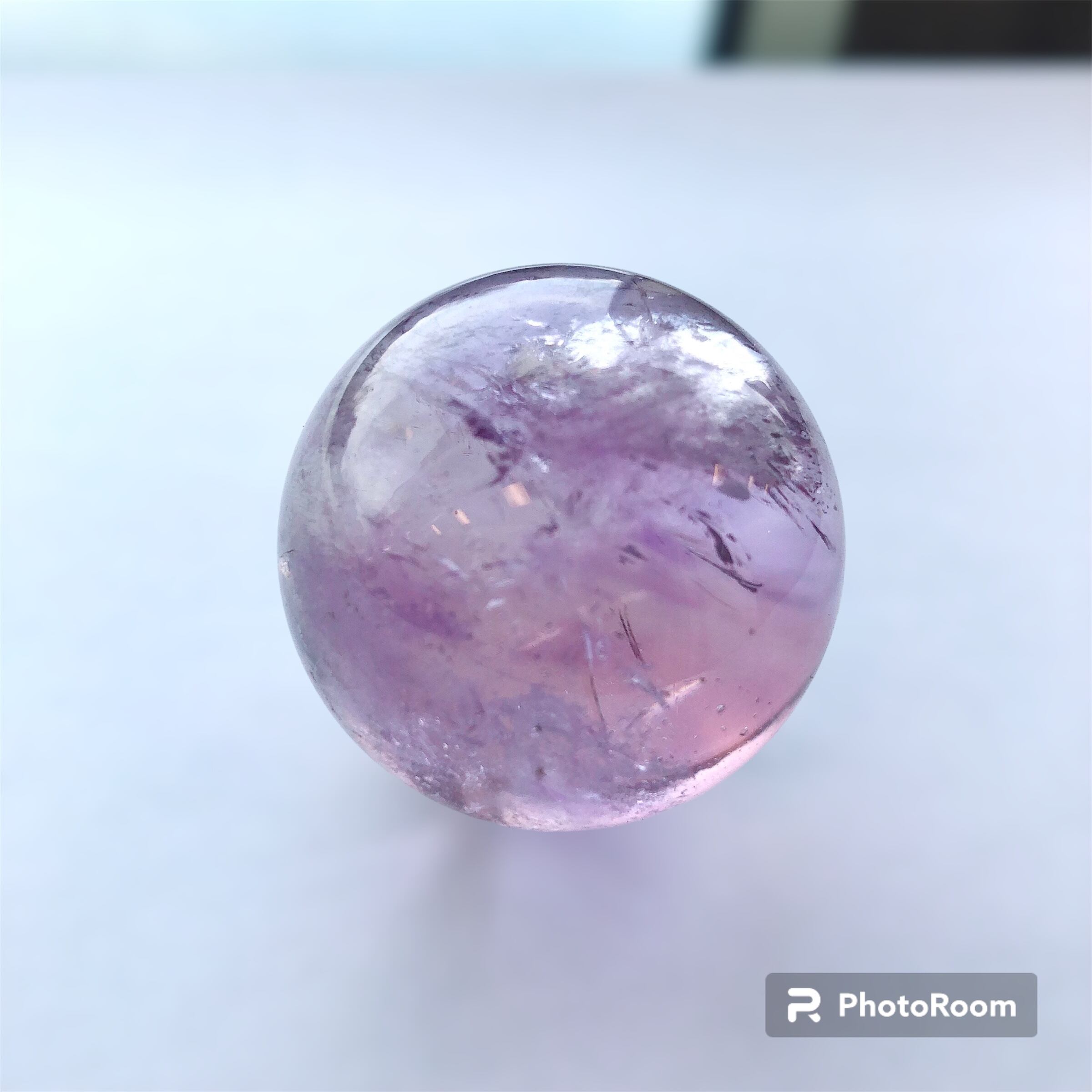 淡いバイオレットカラーにに美しいレインボーが広がる魅力的なアメジストの丸玉です♪